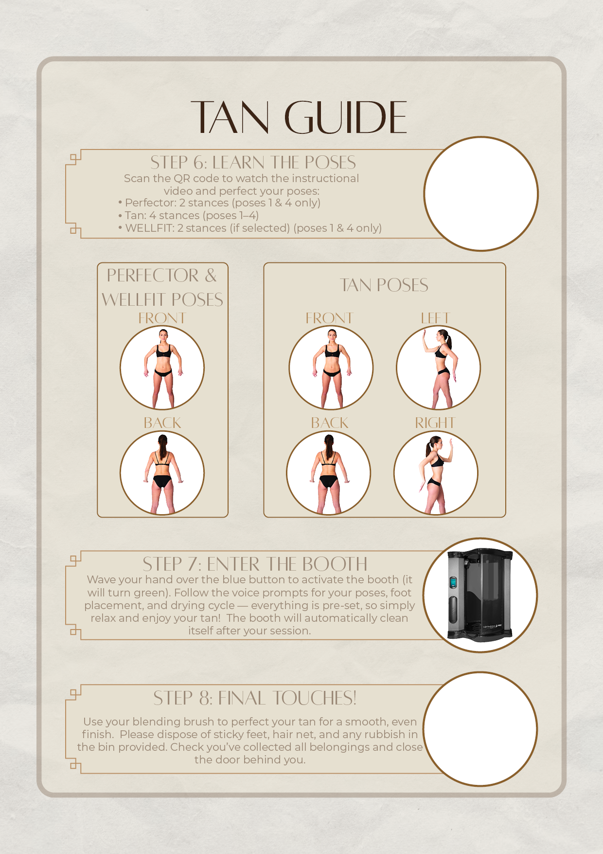 As the tans are fully automated, the about page goes through the process of how the tans work and to answer any questions that the viewer is wanted to get answered. The first thing that the client notices is the booth, to showcase how the process if completed to put the booker at ease.