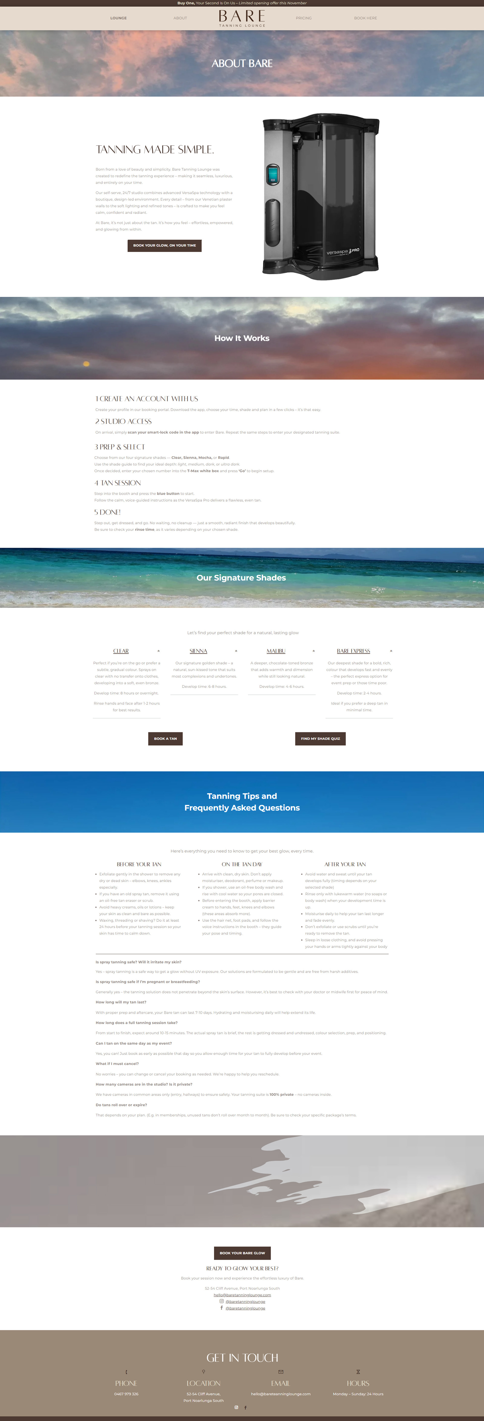 Bare Tanning Lounge is a personalised tanning company based in Port Noarlunga South, South Australia, where the tanning never stops! The place is open 24/7 and it's fully automated, where you book a time, arrive at your slot, and everything is prepared for you - anytime, any day.